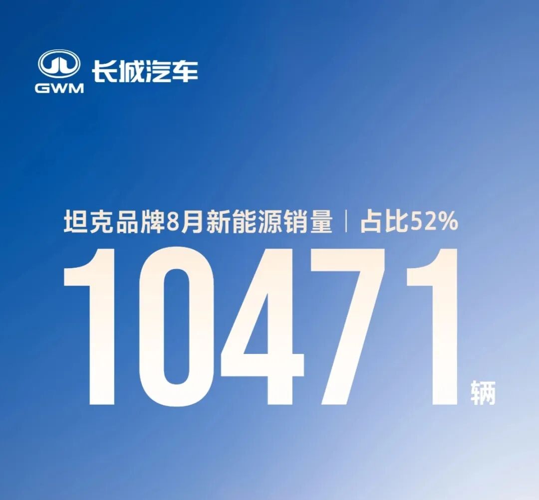 8月坦克品牌表现也非常不错,销量同比增长22.46%至2.00万辆,其中新能源销量为1.05万辆,占坦克品牌总销量的52%。将时间拉长至前8月累计销量来看,数据显示,坦克品牌前8月累计销量同比下滑4.88%,为14.37万辆。
